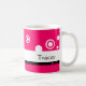 Customisez cette tasse personnalisée en écrivant le nom sous "le personnalisent" la couleur d'arrière - plan de changement de tableau en cliquant sur le bouton de "personnaliser", puis cliquent sur "éditent " >> des " arrière - plans" et choisissent une couleur.