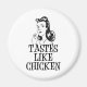 "Tastes Like Chicken" Retro Lady in black and white. Makes an excellent gift for chicken lovers and those convinced that everything tastes like chicken. Printed on clothing, collectibles, fun stuff and more.