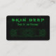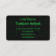 Tatouage Tribal © Sunny Mars Designs. Ce carte de visite tatoueur présente un motif de tatouage tribal noir et vert contre un arrière - plan grunge.