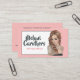 Feminine tattoo artist business card with pretty tattooed female on soft coral background.