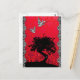 Tattoo Bonsai Tree of Love. A great tattoo inspired postcard for that special someone on valentine's day, or Sweetest day. Features a silhoutte of a bonsai tree, swallow birds, hearts, and tatto like roses. A great fancy damask background of reds complets this great card.