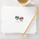 These return address labels are perfect for mailing out wedding invites or other correspondence. They feature tattoo style graphics with retro style hearts in red with blue flower accents that are ready to be personalized with the name of the bride and groom with your full address below.