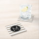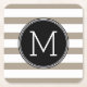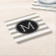 Taupe and White Striped Pattern Black Monogram Square Paper Coaster