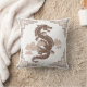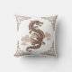 Taupe Brown Chinoiserie Dragon and Clouds Throw Pillow
