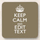 Your personalized Keep Calm saying on a fine custom taupe beige colour style decor. A personalized Keep Calm style saying on a one of a kind gift. Humourous or whimsical try on your creative words on two editable lines of text. Remember to use CAPITAL letters for best results.