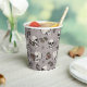 Hand-drawn in black ink, these elegant gothic Halloween paper cups feature a beautiful pattern of skulls, roses and spiderwebs in cream and blush tones, all against an elegant taupe grey background. Ideal for Gothic Bridal Showers, Weddings, Engagement parties, girly Halloween parties, etc.