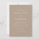 Minimalist, modern wedding invitation featuring your wedding details in white lettering with calligraphy script accents with a taupe background or colour of your choice. The back of the trendy wedding invitation displays your vertical engagement photo. Designed to coordinate with our Modern Elegance wedding collection.