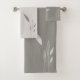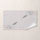 Serviette de bain moderne et design faite en taupe et bronze, avec de hautes tiges de feuilles.
