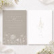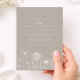 The soft taupe background offers a warm, contemporary neutral that feels both elevated and timeless, while the airy typography creates a balanced and graceful layout. A subtle wildflower illustration along the bottom adds just the right amount of detail without overwhelming the design. The reverse side includes a personalized monogram and date, creating a meaningful and keepsake-worthy finish.