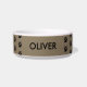 Taupe Paw Print Pattern Personalized Name Pet Bowl