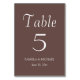 Guide your wedding reception guests to their table with this simple style table number card that features white, stylized lettering on a trendy taupe colour background. Design is on each side of card. Edit your card to change table number, wedding couple's names and date . Order cards separately for each table number.