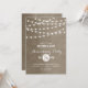 Chic modern summer anniversary party invitation design with simple elegant glowing string lights hanging across the top and a classy mix of modern and calligraphy script fonts on a printed faux watercolor texture background. A simple and stylish preppy design, perfect for summer! Click the CUSTOMIZE IT button to customize fonts, move text around and create your own unique one-of-a-kind invitation design.