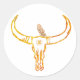Crâne de taureau d'art doré avec mandala sur le front et plume dorée.