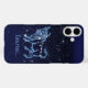 Phone case featuring the zodiac symbol for Taurus in soft silver blue, overlaid with the stars of the constellation, against a starry sky background graded from deep midnight blue to black.