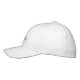 Fits well due to elastic edging, not adjustable. Good qualty material. Good quality embroidering. Subtle lettering (white on beige) just as my wife likes.