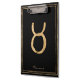 Stylized hammered gold Taurus the Bull astrology zodiac birthday symbol in a hand drawn gold double line frame. Taurus text in a gold script font can be customized to add a personal touch.