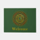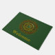 This mandala was designed for the zodiac sign, Taurus, depicting an emerald stone in the centre surrounded by elements representing the sign, such as the symbol for the sign, the constellation, and the alchemical symbol for Earth, as well as filigree vines and weaves wrapping it all into a solid image in shades of browns, greens, and golds. Customize the text on this doormat with your own preferred greeting or remove it entirely to make a unique decoration for your entryway.