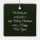 This wildlife ceramic ornament features an illustration of an owl amongst Christmas season greenery. On the backside of the ornament is a holiday greeting. You may buy as shown or personalize with your own words.. (owl illustration by Pixabay)