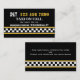 "Business cards" / "Profile cards" with fully customizable templates. DESIGN: Set against a black background, is a black and white chequered block stripe edged with mustard yellow; and text templates in white for your personalized wording. CUSTOMIZE IT - Add you own wording, change the style / colour and size of the font, and move things around to make it unique. Simply use the "customize it" button. IDEAL FOR: All taxi transport / chauffeur driven businesses, that work 24 hours a day, 7 days a week, and are on call for paying customers. Add information about your rates / baggage cost, charges per kilometre or mile travelled. COPYRIGHT: Original design Robin Wood © - all rights reserved. STORE ADDRESS: http://www.zazzle.com/corporateworld*
