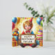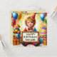 A young boy wearing a clown costume celebrates Taylor's birthday. The greetings on the card are "Happy Birthday Taylor". On the back of the card is a small version of the front picture, and plenty of room to write a message. Made with the assistance of AI Bing.