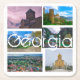 Stylized Tbilisi / Borjomi / Ananuri Castle / Kazbegi Georgia Caucuses City View / Landscape Collage Coaster to add to your travel memorabilia / home décor collection. A cool gift / present for all who love unique custom design personalized items, positive vibes, holidays, travelling, remote amazing destinations, love happy colours, busy prints etc. Explore, travel, country, destination, discover. სამების ლავრა თბილისი საქართველო ბორჯომი
