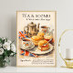 Celebrate the charm of traditional British afternoon tea with this delightful Tea and Scones Poster featuring a beautifully illustrated tea set, warm scones, strawberry jam, and a classic teapot. Inspired by vintage cookbook and café poster designs, this artwork captures the cozy atmosphere of London tea culture with elegant watercolor-style details and warm colours.