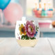 Tea Cup Floral Bouquet Stemless Wine Glass