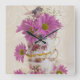 A still life of pink daisies and vintage tea cups on a background of draped lace. Photography by Sandra Foster © Sandra Foster Designs - Zazzle.