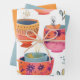 This cute set of wrapping sheets features an illustration of tea cups and leaves and two solid colours taken from the illustration.