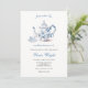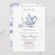 Baby Shower invitation featuring a chinoiserie teapot perfect for a Baby Tea Party. Customize with your information for the bride to be. Click "click to customize further" to change the font style, size or colour.
