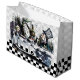 Large glossy gift bag with a vintage Alice in Wonderland image, on the front and back, of the Mad Hatter’s tea party with Alice, the March Hare and Dormouse on a grey and white and black and white chequerboard. See matching medium gift bag. See the entire Alice in Wonderland Gift Bag collection in the PARTY FAVORS section.