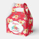Personalize these tea party themed birthday favour boxes for an extra special party touch. Created with a red floral pattern background of buttercups and pansies and a pretty floral spray accent. See the coordinating party plates, napkins and more items in this same collection.
