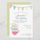 Tea Party Birthday Personalized flat card from Ricaso ... with green and white spotty pattern back detail .. a pretty, colourful and feminine design