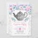 Tea Party Birthday Party Invitation. Elegant design in faux glitter silver with floral accent. Invite card with glitter tea pot and script font with confetti. Teal, purple pink, and white. Perfect for a stylish bday celebration. Can be customized into any age!