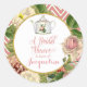 Tea Party Bridal Shower Chevron Stripes Rose Classic Round Sticker