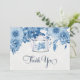Tea Party Themed Thank you Notes on paper Flat card, 5 x 7 with envelope. (Order at the same time as your invitations and they add together for a quantity discount). This art collection features a vintage style teapot that matches the elegantly hand painted in acrylic watercolor by Audrey Jeanne Roberts. Classic Chinoiserie style chintz has blue and white garden and wild flowers that re combined with gathered leaf foliage for a modern take on traditional style. Copyright.