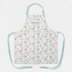 A beautiful kitchen apron with hand-drawn illustrations including a tea set of tea pots and cups, dessert plate of cupcakes, a cookie and cake along with cutlery and steaming tea and coffee. Great for hi-tea cafes, tea makers to wear at shows, tea shops and customizable to the person you are gifting the apron to or to add your business name.