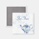 Pretty blue and white refrigerator magnet with a blue and white floral tea pot, on a pale blue floral swirl background, text reads Tea Time and can be customized to read what you want.