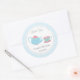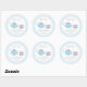 Round sticker for baby shower favour with tea party theme and pink-blue colour combination.