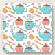 A cute tea time pattern with a steaming pot of tea and sweets.