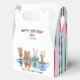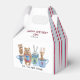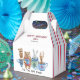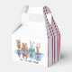 Grab your friends and your favourite mug. It's "Tea Time With Friends". These delightful characters are just hanging out and drinking tea. There's an owl, bear, rabbit and deer, all with colourful mugs. On the side of this favour box, there are blue and red pinstripe accents. This box can be customized.