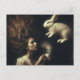 A cute rabbit magically floats above a woman enjoying her steaming tea fantasy art