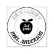 This self inking stamp is designed for any teacher to use for her classroom books and supplies. The design is accented with a graphic of an apple. Custom text allows you to personalize with the teacher's name and grade.
