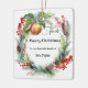 Christmas ornament featuring a watercolor holiday wreath with an apple. Beautiful to say Thank You to your teacher.