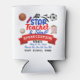 Teacher Appreciation Week All-Star School Name Can Cooler. In colours red, white, and black. Images of sports with a baseball, soccer ball, basketball, and Popcorn. Personalize this with the Appreciation, date, thank you, and school name. Edit it further to make more changes.