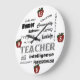 This is a cute wall clock to give as a gift to a teacher in your life. Features a word cloud that denotes all the attributes a school teacher needs in this day and age to be top notch! Plus it has 4 red apples to mark the quarter hours…a wonderful gift for the teacher!