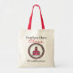 A bag for teachers featuring the logo of The Pink Schoolhouse inside a circle shaped black gingham frame with red trim. Red and black text reads "Teachers Have Class." Personalize with your name under image.