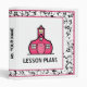 A white binder with a black paint splatter border and pink accents. Front features the logo of The Pink Schoolhouse with text "lesson plans" underneath. (or personalize with other text of your choice.) Personalize the spine with your name or other text. Font size, style, colour, and position may be changed using the design tool. Just click "customize it."