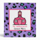 A teacher binder featuring a purple leopard print design covering outside surface. Pink Schoolhouse logo inside square on front. Personalize with your name.