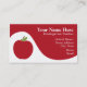 A simple, traditional business card for teachers featuring a red and white colour scheme. Illustration of red apple at left. Personalize with your name and information in white over red section at top.